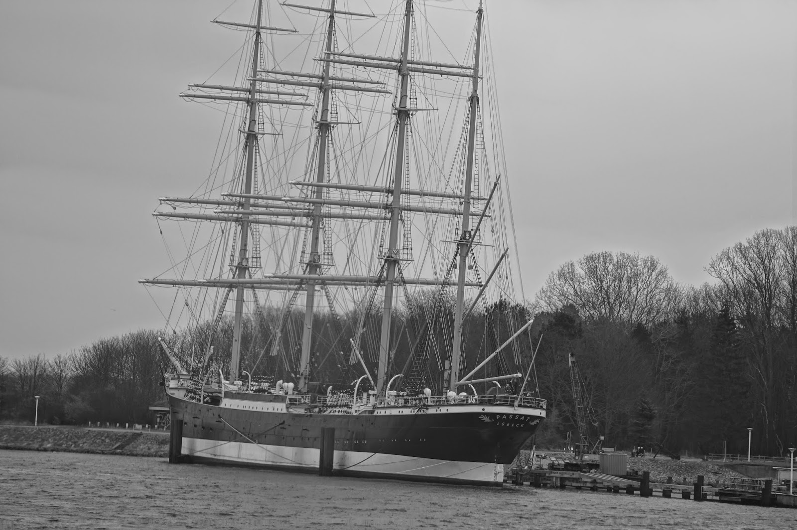 | also wir sind am Meer, zu sehen ist die Passat ein altes Segelschulschiff |