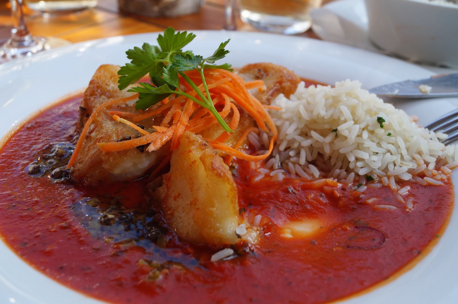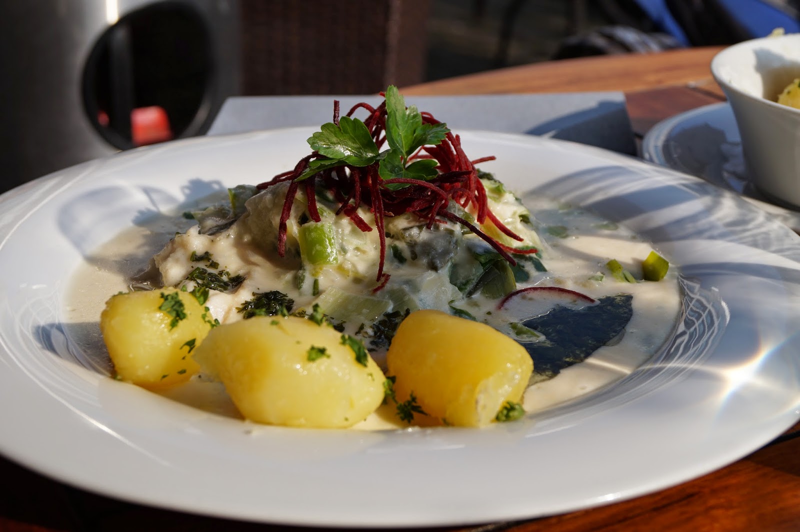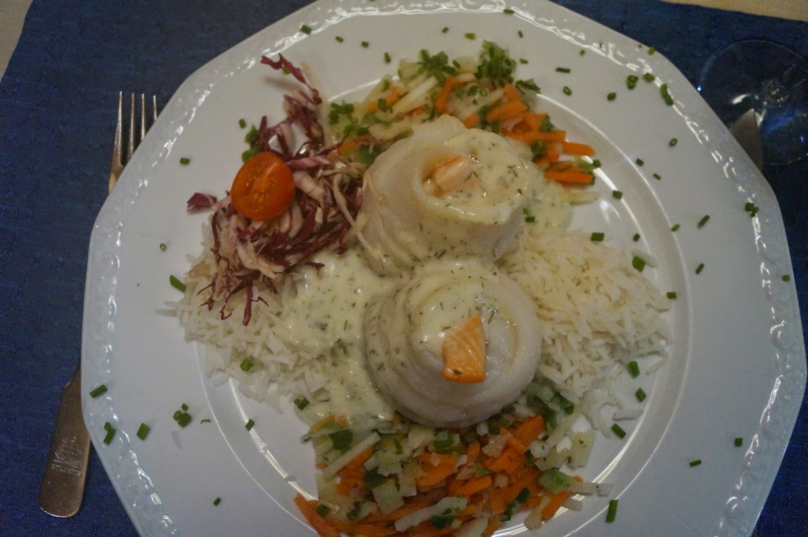 | wir hatten in Scharbeutz die Mittagskarte probiert, jeweils Fisch |