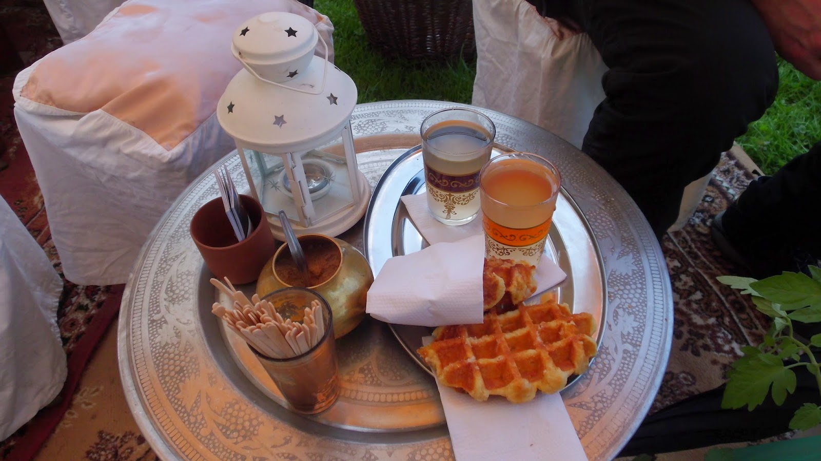 | eine kleine Verschnaufpause mit Pfirsich-Maracuja Tee und Waffeln |