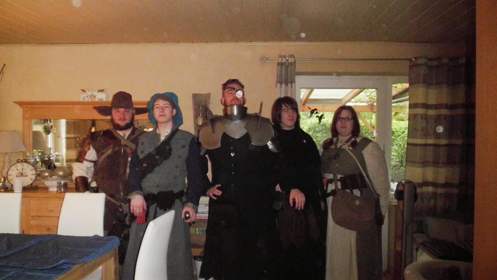 Mein Sohn(in der Mitte) hat heute Geburtstag und hat Karten für die Rollenspiel-Messe in Köln gewonnen. Sein Kumpel aus Wilhelmshafen auch und so sind alle aus Magdeburg und Wilhelmshafen angereist und von hier aus dann gestartet. Auf dem Bild fehlt noch mein kleiner, der hatte aber keine Lust auf Gewandung und hat lieber das T-Shirt seiner Larp Gruppe angezogen um Werbung zu machen.