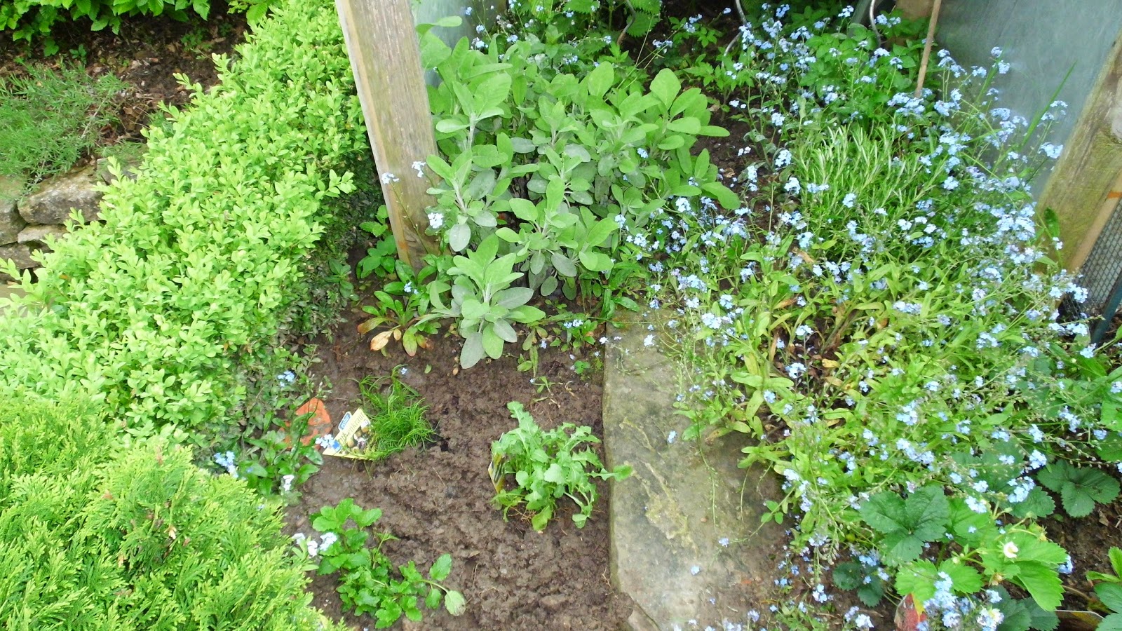 | die Kräuter kamen gleich ins Beet, lecker ist die Wasabi-Rauke |