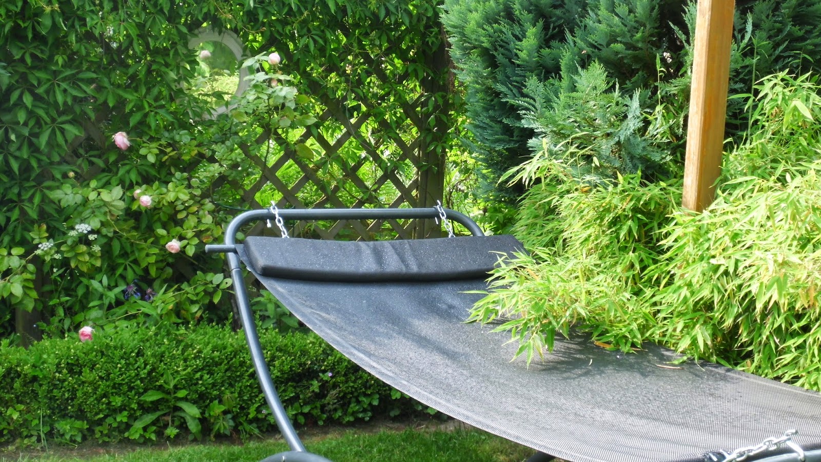 Und im Garten ist auch alles auf Sommer getrimmt. Der Pool hat sein Wasser bekommen, die Liegen stehen bereit, die Hängematte wartet und die Rosen und anderen Blümchenmachen sich auch fein.