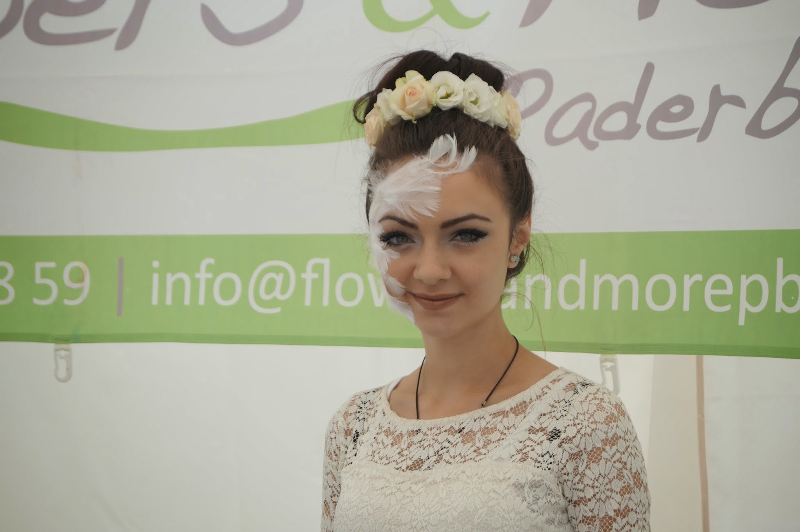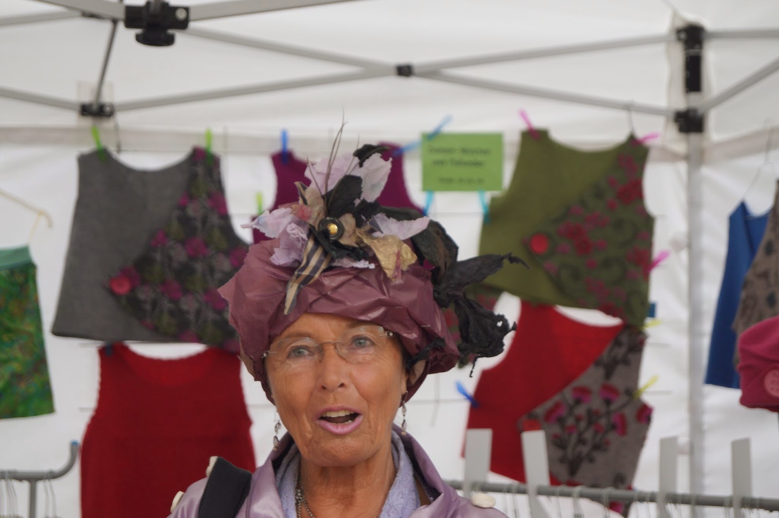 | eine nette Besucherin mit selbstkreiertem Hut |