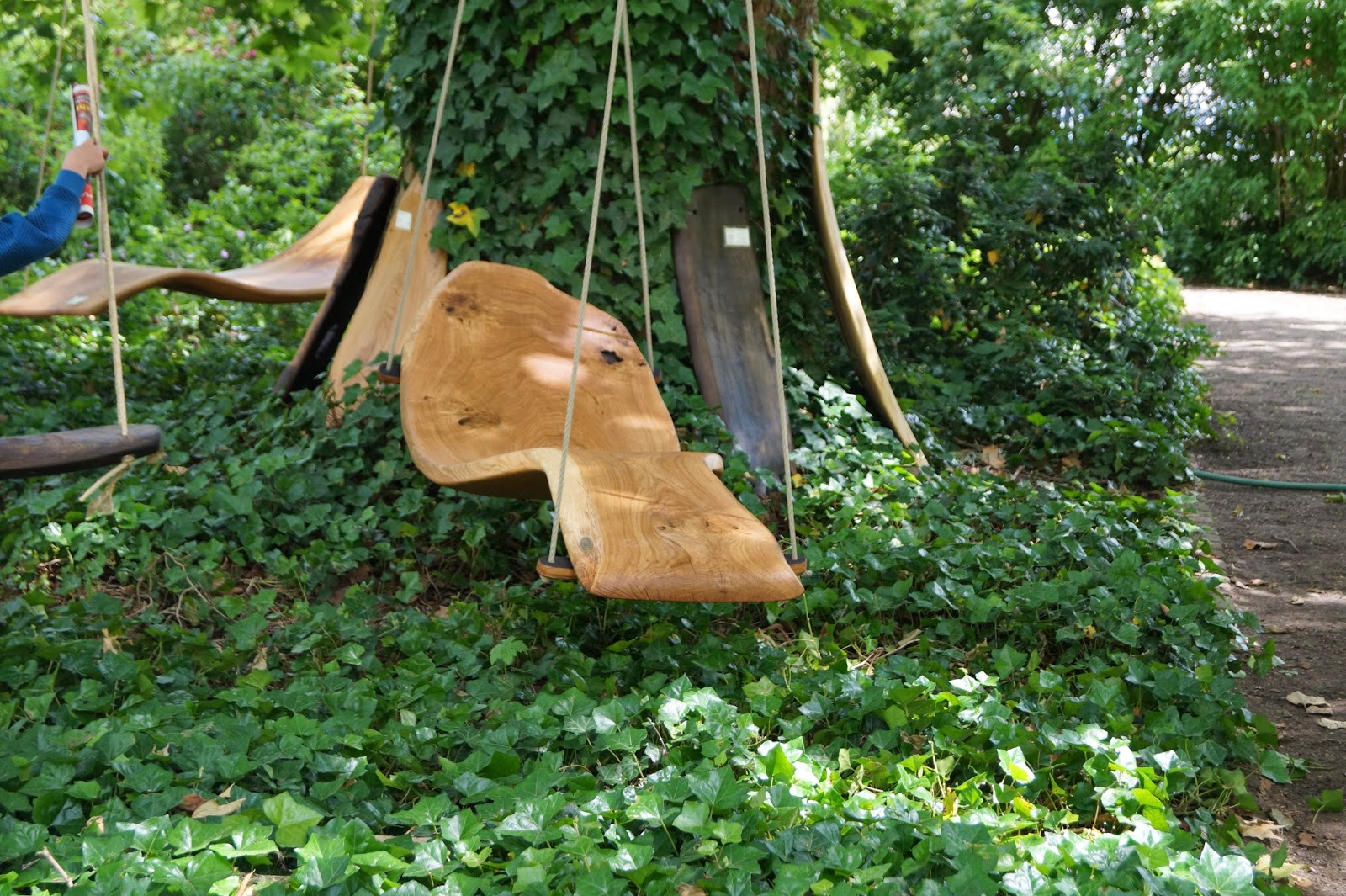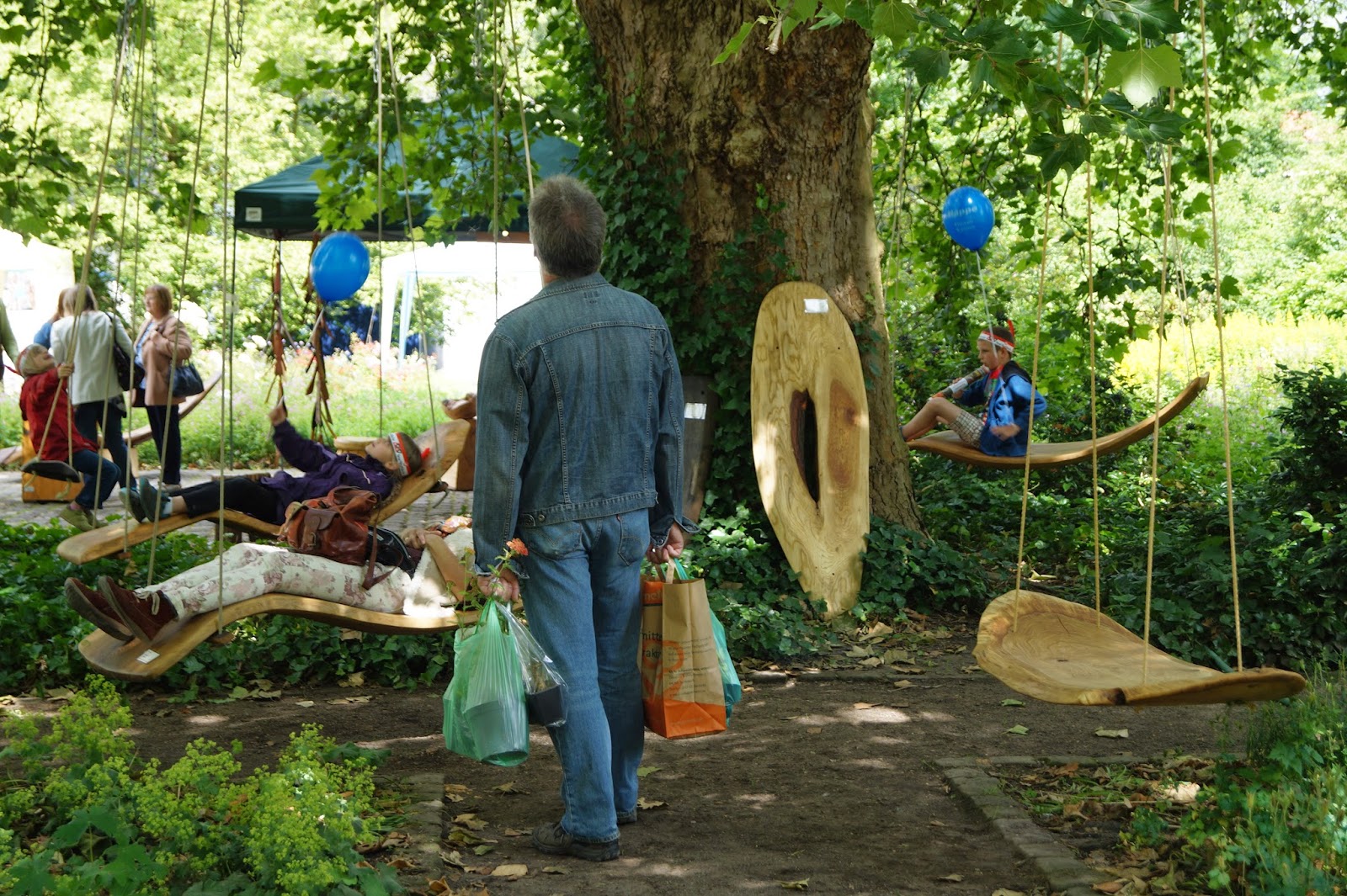 | Holzliegeschaukeln, das war ein Erlebnis. Man liegt auf der Schaukel, schaut hoch in den Baum und ist ganz entspannt |