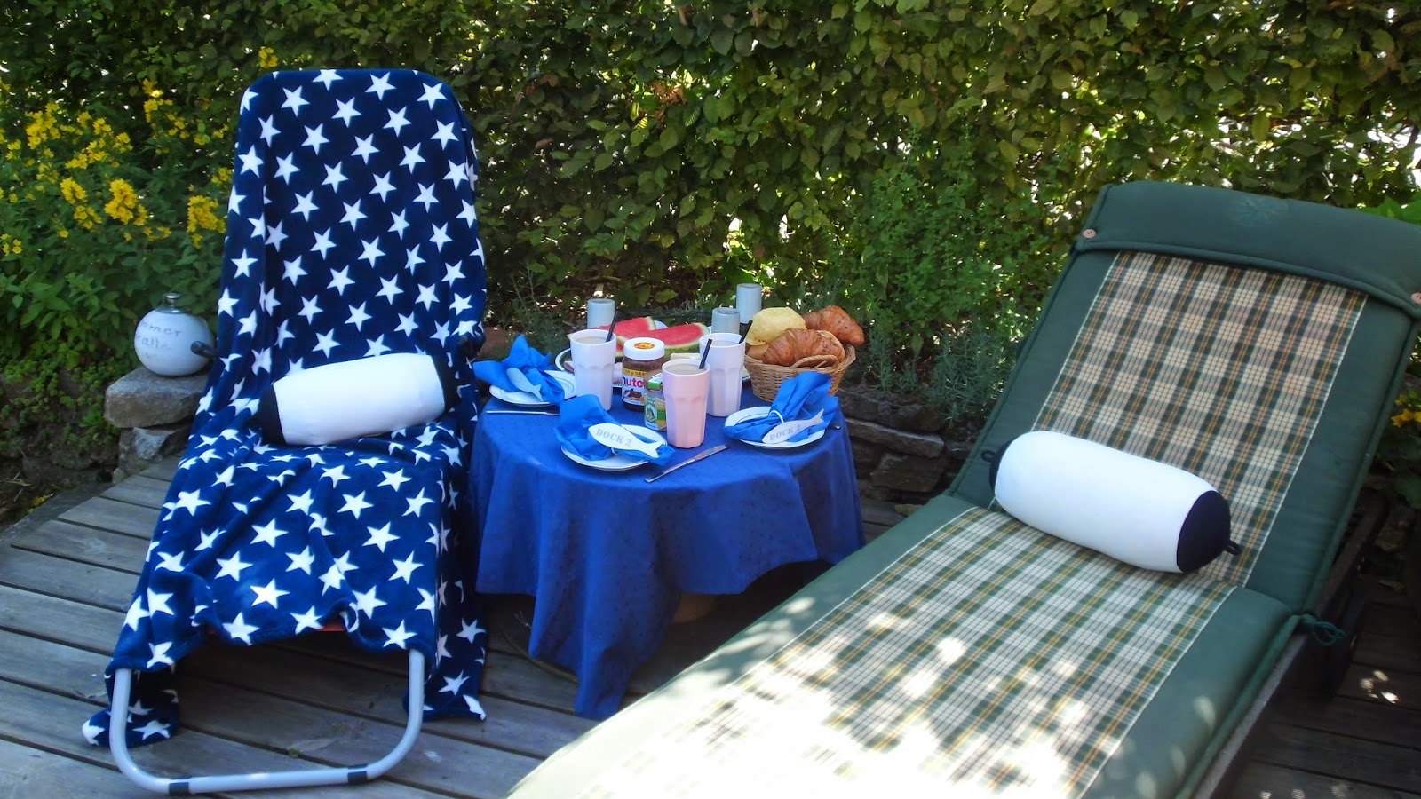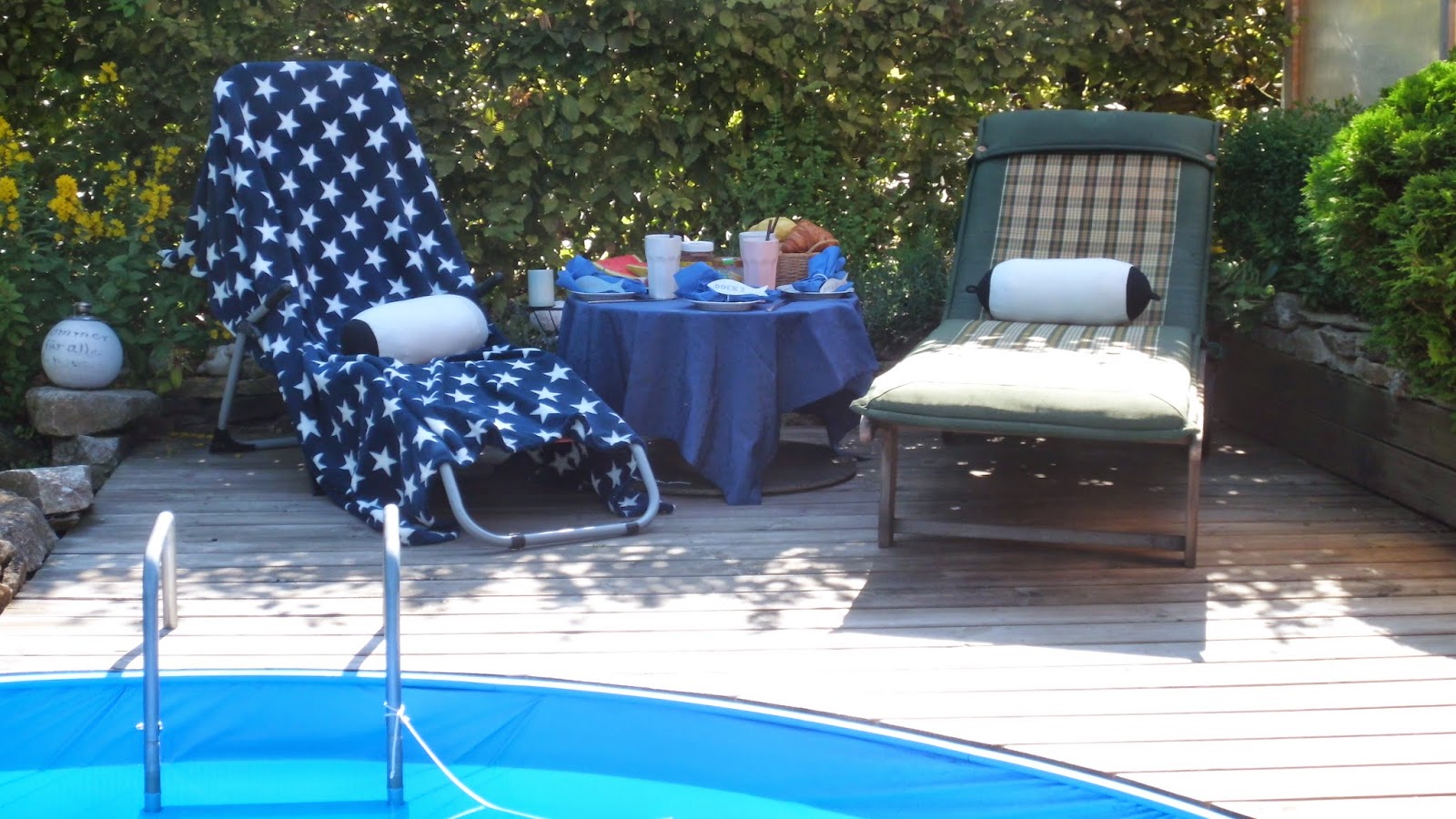 so habe eingekauft und Frühstück gemacht. Wo kann man besser frühstücken bei diesem Wetter als am Pool?