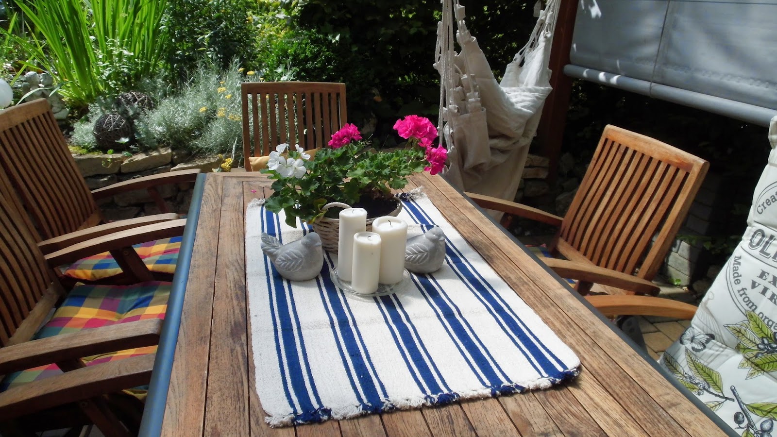 Ich habe geharkt, gegossen und meine Blumen bewundert. Noch einen Hüpfer in den Pool und dann ab zur Arbeit.