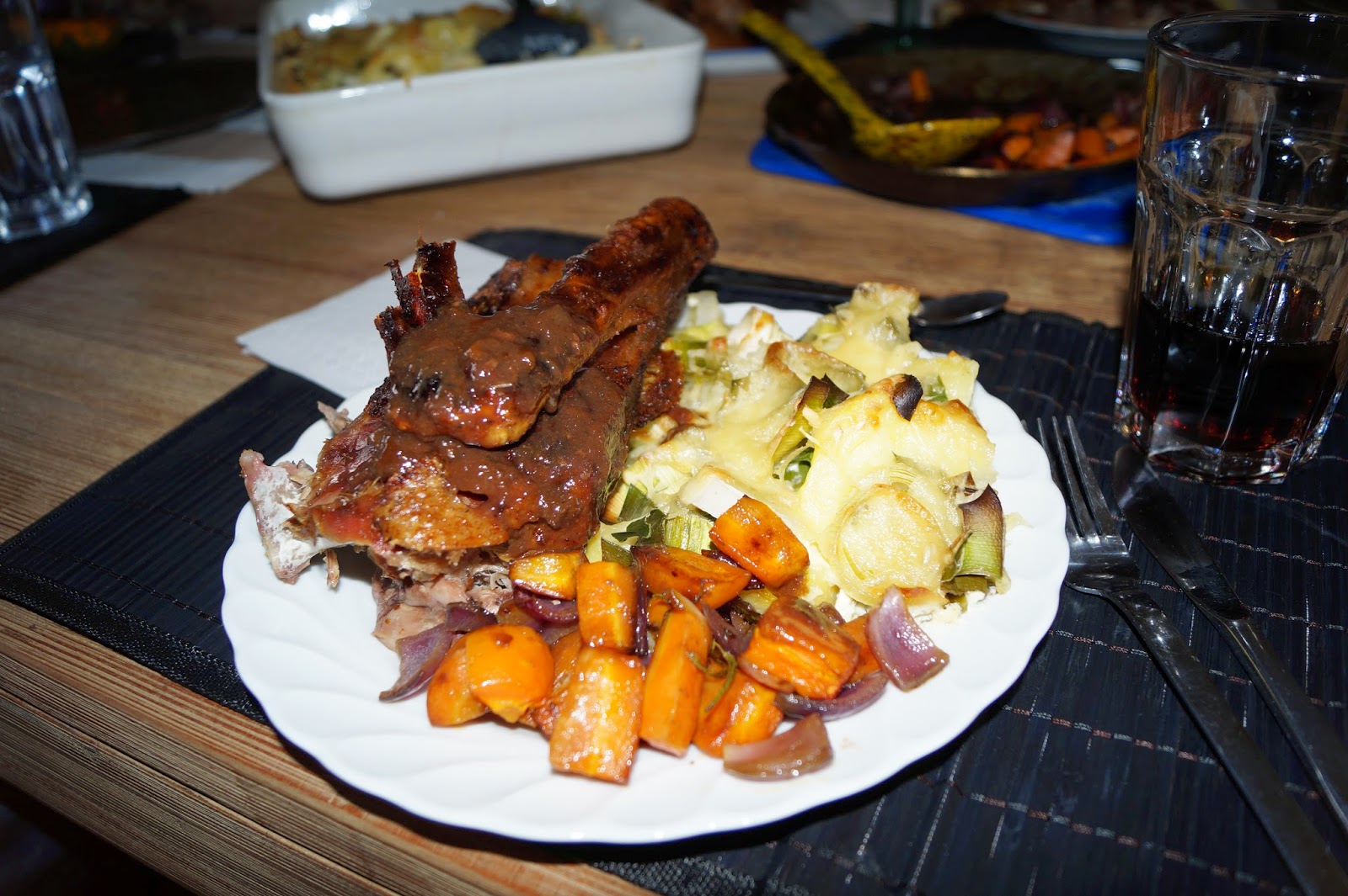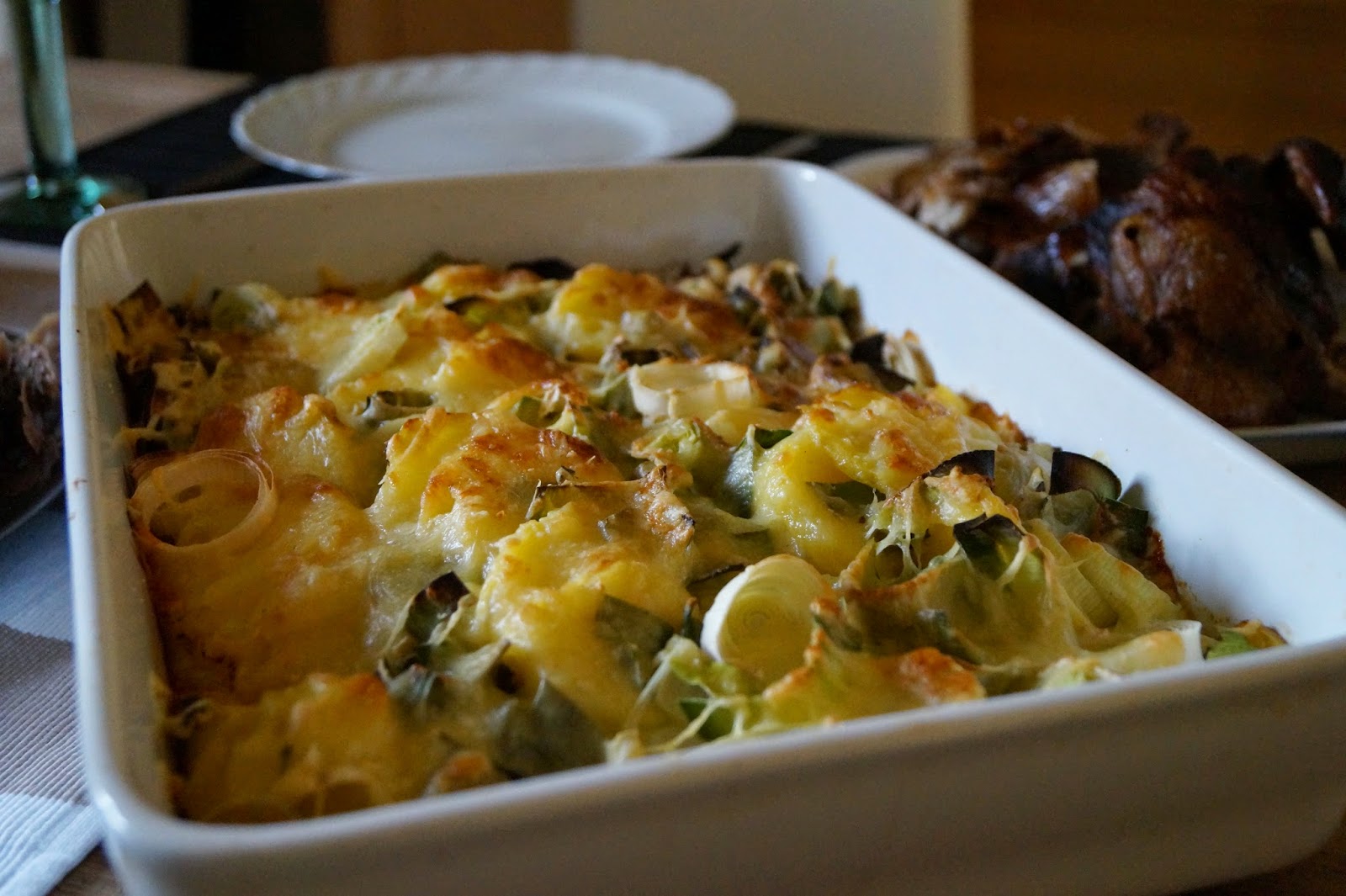 | Gans mit Kartoffelgratin und Röstgemüse |